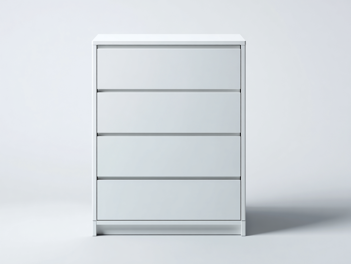 The drawer layout allows convenient organisation of clothing and household items. The top surface provides space for small décor or daily essentials. The base design allows easier floor cleaning, while the handle-free drawer fronts enhance the minimalist appearance.