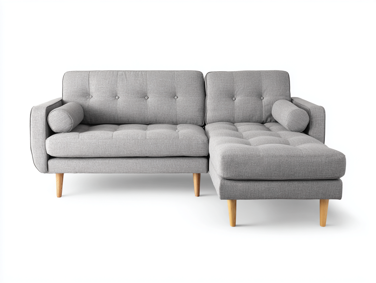 This corner sofa combines modern simplicity with practical comfort, making it suitable for living rooms, apartments, and lounge spaces. The chaise extension provides a relaxed seating option, while the compact proportions support efficient space use.